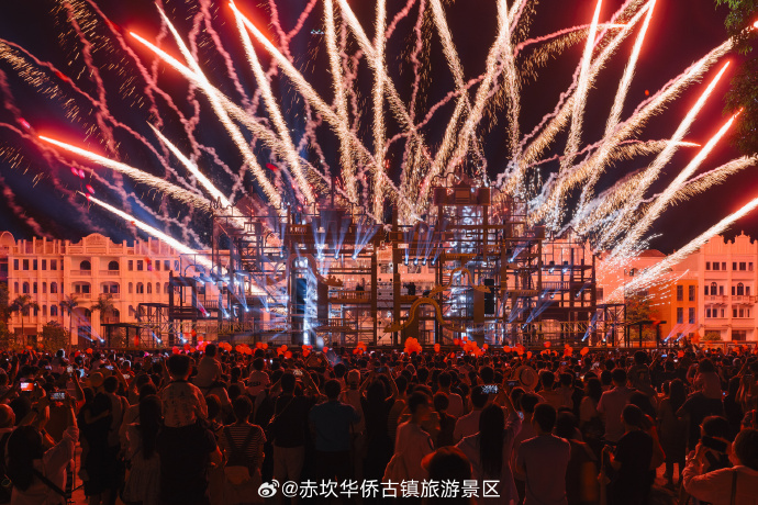 夜幕降临,大型的表演《百年火秀》更是引起景区内气氛的高潮,赤坎华侨古镇每晚有烟火汇演、火壶表演、 打铁花活动,“火秀”是一场巨大的养成系表演。“火秀”的全部表演内容由赤坎演艺的 47 名小伙伴完成因此, 白日优雅秀丽的民国佳人可能会在夜晚变身抡大锤的金刚芭比为了击出最美的夜空铁花,他们跟随非遗传承人学 习数月,为了让舞火龙在国庆日一鸣惊人,他们钻研舞步、舞龙,在传统中创新……